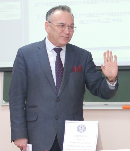 20.06.2019. В ходе повышения квалификации по дополнительной профессиональной программе выступил с докладом на "Круглом столе" по теме: Деловая игра: подготовка, методика проведения в ходе реализации программ Учреждения при подготовки "должностных лиц ГО и РСЧ". |